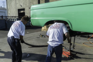 Part 4 of the DJM 1966 Ford F100 Budget Project gets the rear lowered about 4 inches. We used a leaf spring hanger and shackle kit to reposition the leaf springs up on the frame rail. First, we removed the factory leaf spring hangers, replacing them with DJM leaf spring hangers. Followed by removing and replacing the rear leaf spring shackles. Follow along and see how this was done!