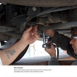 We knew DJM Suspension had been working on a line of 4WD lowering kits so off we went to DJM to find out what was going down. What was going down is a 2004 4WD Chevy Avalanche. Using their unique Calmax control arm system DJM brought the front down 3 inches while maintaining the full use of the four wheel drive and the GM alignment figures. On the rear they used a coil spring and hardware combo along with some frame modifications that allows a 3 inch drop with enough suspension travel that you cannot tell your driving a lowered truck. Seems almost like magic, but it drove like stock, with improved handling, Old dog – new tricks. Here’s how it went down.