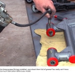 Installing the new DJM drop kit for the Tacoma requires some effort. The DJM engineering staff demonstrated the installation for us on a brand-new, rich blue ’06 Tacoma extended cab. The accompanying photos cover just about every detail of the installation.
